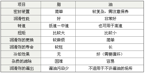 軸承的潤滑方式主要分為脂潤滑和油潤滑,其一般性比較如下所示: